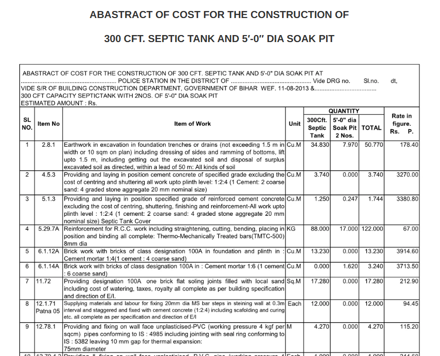 300 CFT. SEPTIC TANK AND 5′-0″ DIA SOAK PIT