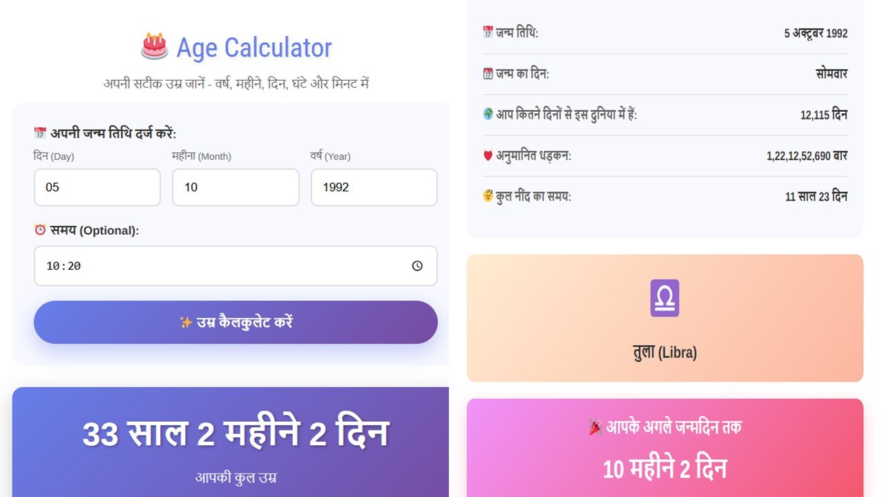 इसीलिए मैंने एक simple और accurate age calculator बनाया है जो आपकी सारी problems solve कर देता है।