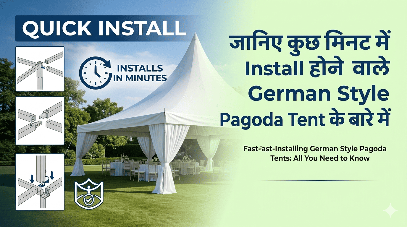 German Style Pagoda Tent आधुनिक Event Industry में Temporary Structures की स्वर्णमानक (Gold Standard) तकनीक है। इसकी Iconic High-Peak Design, 6061-T6 Aluminium Frame, 850 g/m² PVC Cover, 100 km/h Wind Resistance एवं TÜV Certification इसे साधारण Canopy Tent से कहीं ऊपर की श्रेणी में रखती है। भारत में Weddings, Corporate Events, Exhibitions, Festivals में इसकी माँग तेजी से बढ़ रही है। Modular Design, त्वरित Assembly, All-Season Usability एवं Long-Term ROI इसे Event Rental Business के लिए एक उत्कृष्ट निवेश बनाते हैं।